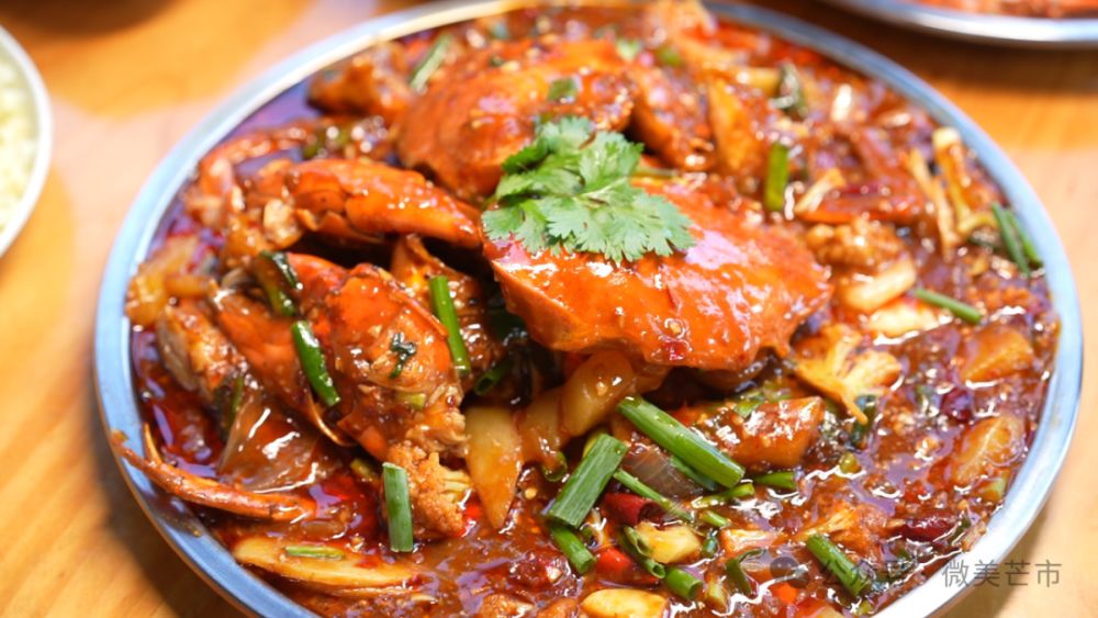 鲜活的缅甸青蟹外壳呈青黑色,比普通海蟹更薄脆易剥,蟹肉晶莹鲜甜,蟹膏饱满醇厚。缅甸青蟹自带“双重鲜味基因”,兼具河蟹的细腻与海蟹的浓郁,其肉质虽无土腥味,但清蒸却略显微苦,因此,许多本地餐厅烹饪缅甸青蟹时多用重口味做法“扬长避短”,以云南本地作料搭配傣式大酱的爆炒方式来激发螃蟹深层的鲜味。