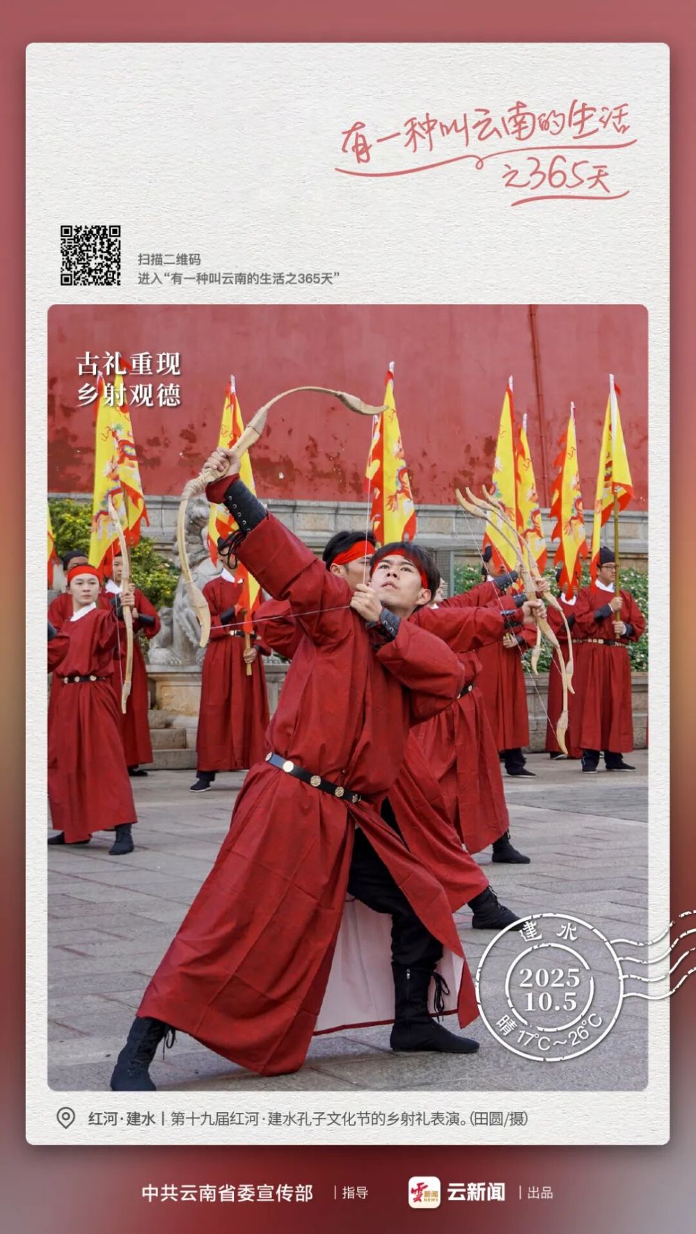 近日,2025年第十九届红河·建水孔子文化节乡射礼暨传统儒学文化体验活动,在红河哈尼族彝族自治州建水县朝阳楼广场开幕,通过复原周代传承至今的“乡射礼”,生动展现中华传统礼乐文明的深厚底蕴。