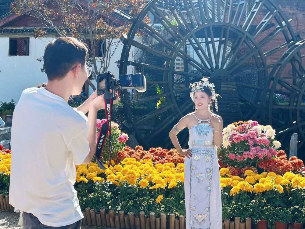 走进丽江古城,五彩菊花缀满街巷,游客们漫步古城拍照打卡礼让有序,垃圾入桶爱护花草,展现出良好的文明素养,用言行守护古城古朴韵味。与此同时,志愿者的身影遍布古城街巷,他们穿梭在人群中,耐心为游客解答路线咨询,为游客提供帮助;环卫工人则沿着街巷默默清扫落叶与杂物,时刻守护着古城的洁净。游客文明、服务暖心、景致动人,一幅和谐、文明、美丽的图景在丽江古城徐徐铺展。