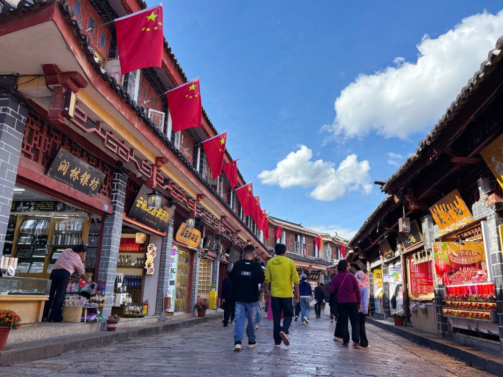 10月5日,丽江古城景区游人文明游览,景区整洁有序。(丽江融媒记者 和宝其 摄)