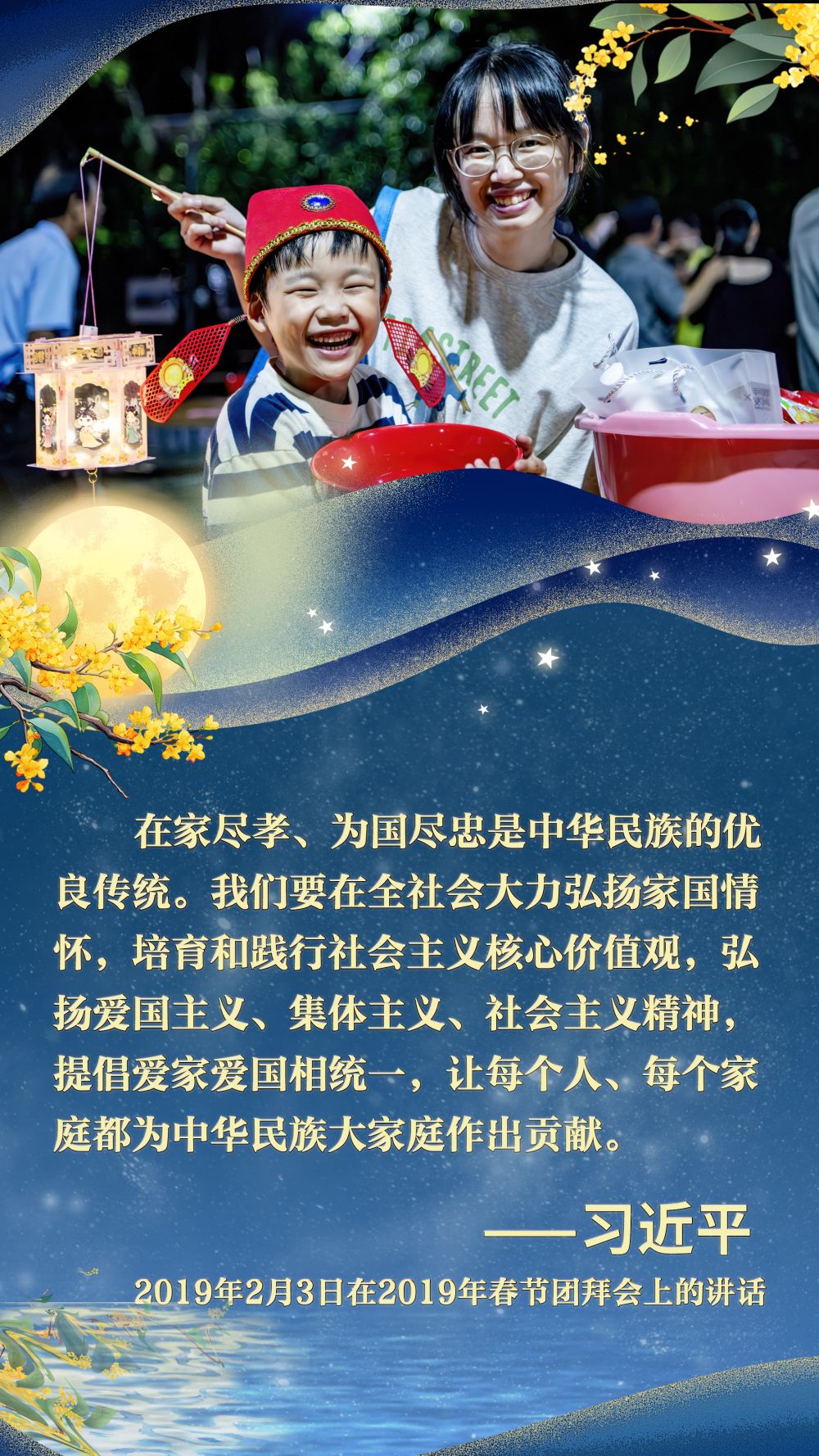 江山万重,皓月千里。刻在中华儿女骨血里的家国情怀,让每一次团聚都成为对美好生活的礼赞,让每一份祝福都汇聚成民族奋进的磅礴力量。