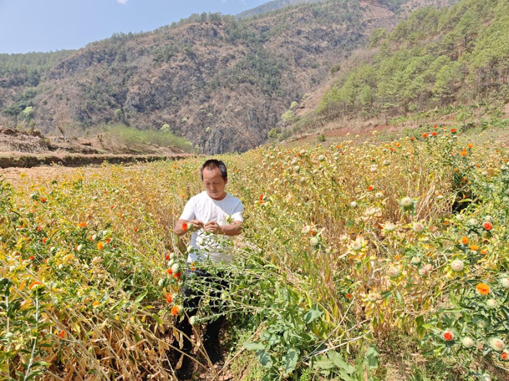当前,在古城区金江白族乡江边村的田野里,一片片红花开得正艳,村民们穿梭在花田间,忙着采摘、晾晒。近年来,江边村依托特色农业种植,探索出一条“红花+百香果+烤烟+特色养殖业”的多元产业发展之路,为乡村振兴注入新动能。