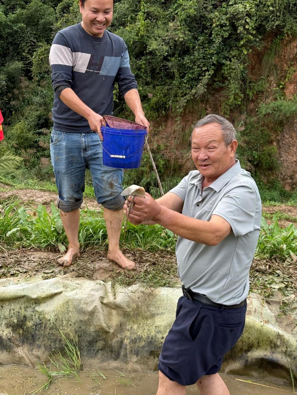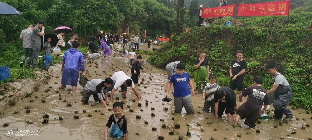 国庆节当天,里山乡中铺生态种养殖基地一派热闹景象。远处青山巍峨矗立,近处绿水蜿蜒环绕,连片阶梯式稻田与自然景致相映成趣,一场充满野趣的摸鱼节在此拉开帷幕。