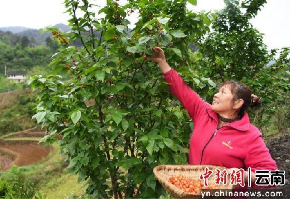 宏地村地处金沙江干热河谷地带,光照充足、昼夜温差大,是樱桃生长的天然沃土。过去村民仅零星种植樱桃,收入微薄。村民刘丽回忆:“2008年一场大病让家里陷入贫困,是党和政府的帮扶让我们重燃希望。”通过政策扶持和技术指导,刘丽家开始规模化种植樱桃,并借助直播销售,成功脱掉“贫困帽”。