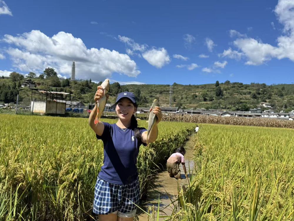 金秋十月,玉龙县九河乡小阿昌村的稻田里,金色的稻浪随风起伏,空气中弥漫着稻谷的清香。然而,比稻香更先吸引来客脚步的,是活蹦乱跳的生态稻田鱼。