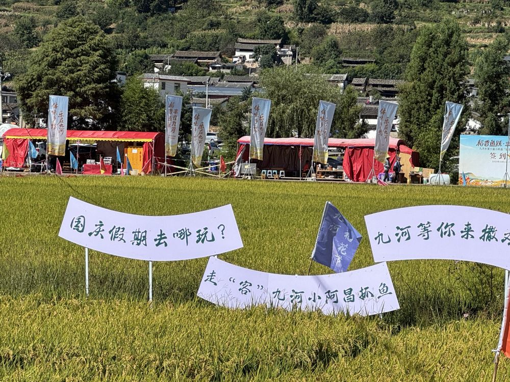 本次“稻田鱼丰收节”上,除了经典的抓鱼比赛,还设置了非遗展示、民族打跳、田边火塘等环节。“举办这个活动,就是希望‘以鱼为媒,以稻会友’。”九河乡政府相关负责人说,“一方面让小阿昌的生态鱼、米走出大山;另一方面,也想让更多的人来到这里,体验九河独特的民族文化和田园风光,走出一条以特色农业为基础、乡村旅游为延伸的乡村振兴新路子。”