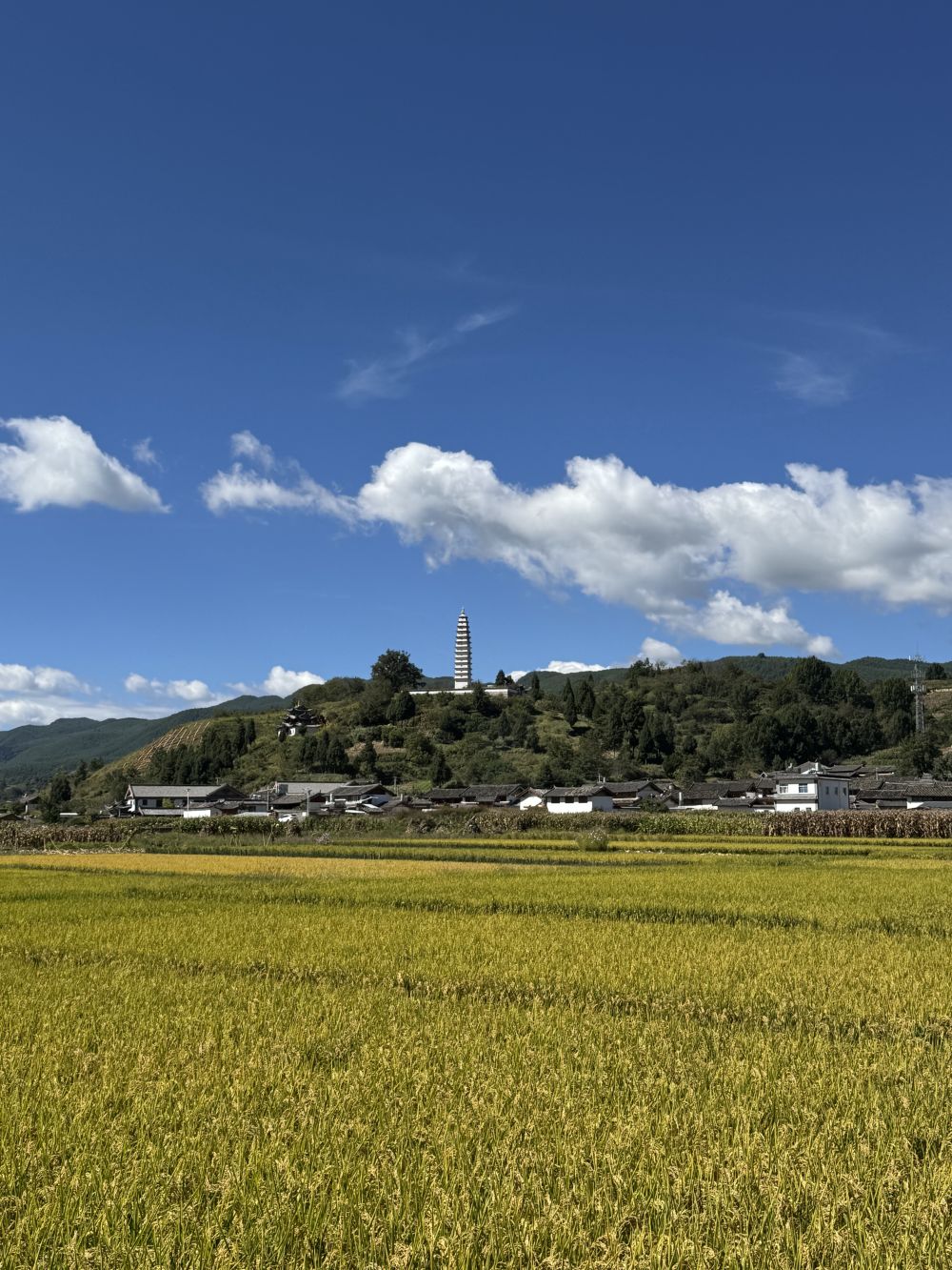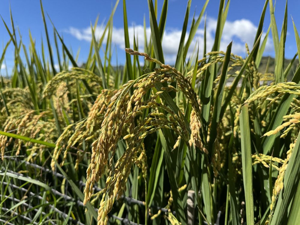 玉龙县九河乡小阿昌村的稻田里,金色的稻浪随风起伏。(丽江融媒记者 张小秋 摄)