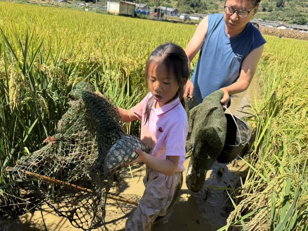 金秋十月,九河乡小阿昌村“稻田鱼丰收节”火热进行。(丽江融媒记者 张小秋 摄)