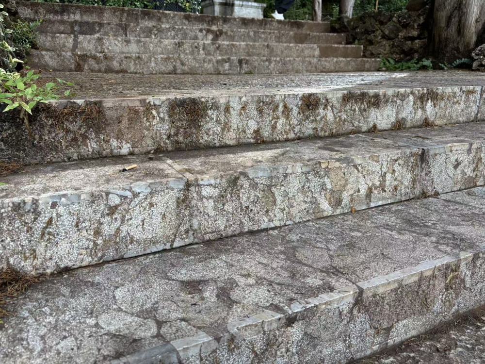 步道上散落的烟头。(丽江融媒记者 和宝其 摄)