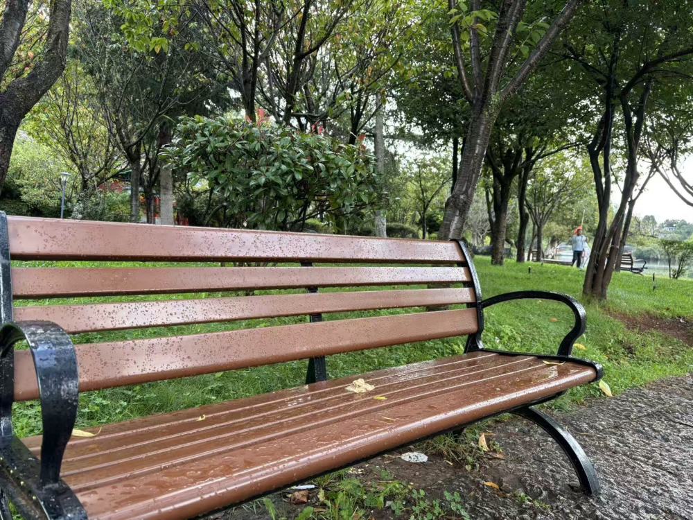 然而,在这幅美丽的画卷中,却有一些不和谐的“墨点”出现:部分长椅旁散落着纸屑、步道上也有散落的烟头,这些废弃物与公园的清雅景致形成鲜明对比。