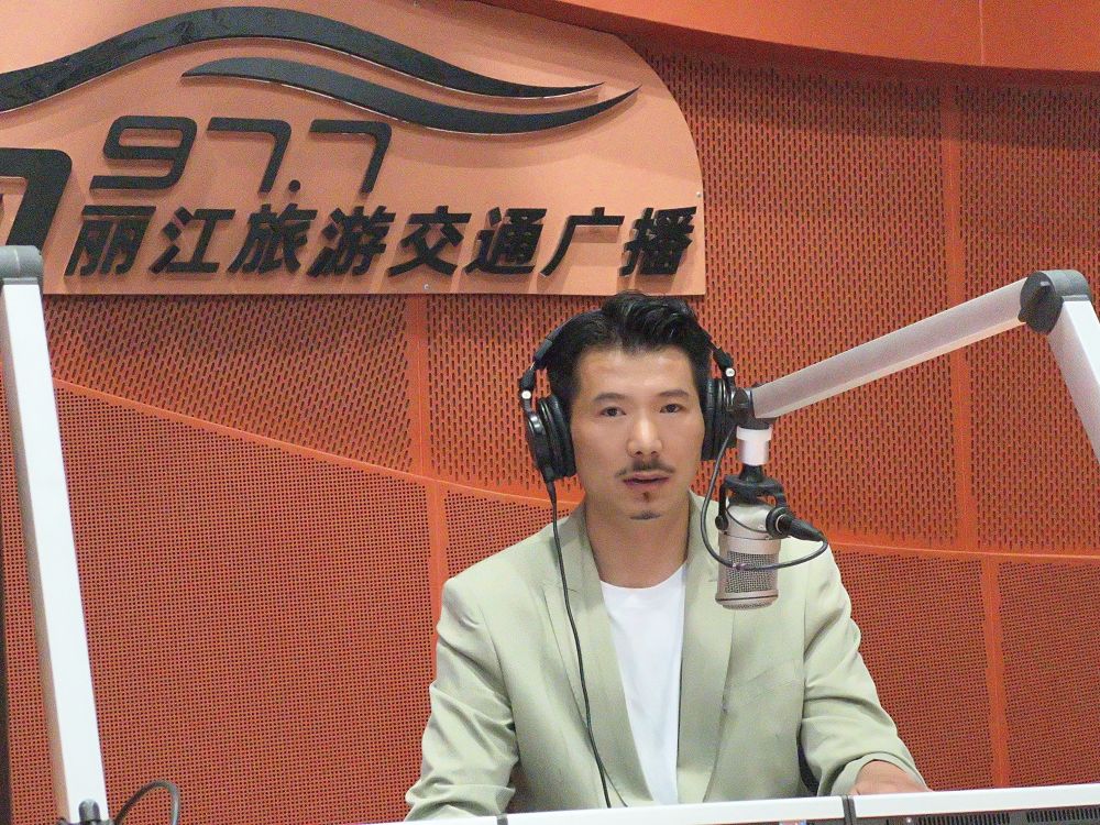10月9日,丽江金鸿信售后服务总监左涛做客FM97.7丽江旅游交通广播直播间。(丽江融媒记者 杨超 摄)