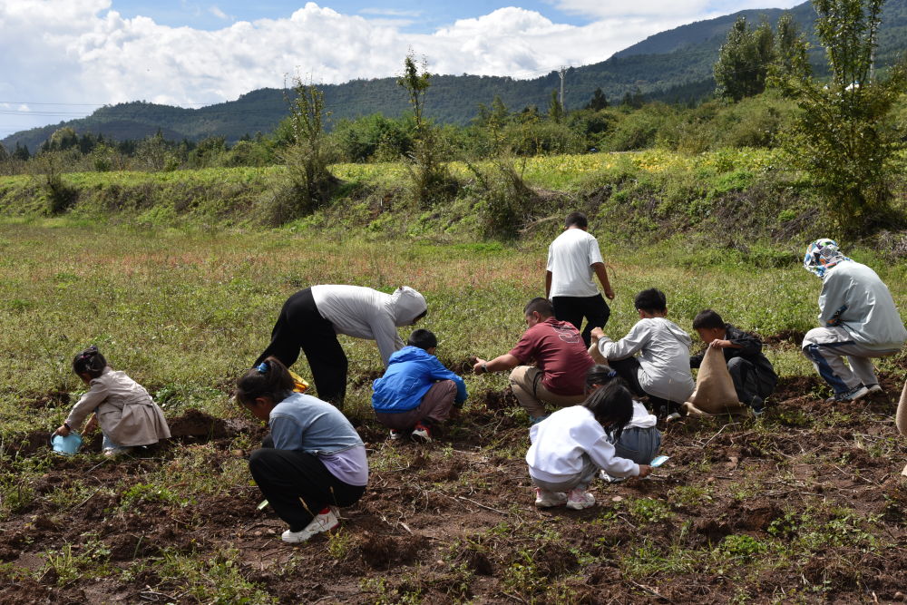 孩子们到丽江美鲁纳西村景区的高原农业生产观光区挖土豆。(丽江融媒记者 段玉菊 摄)