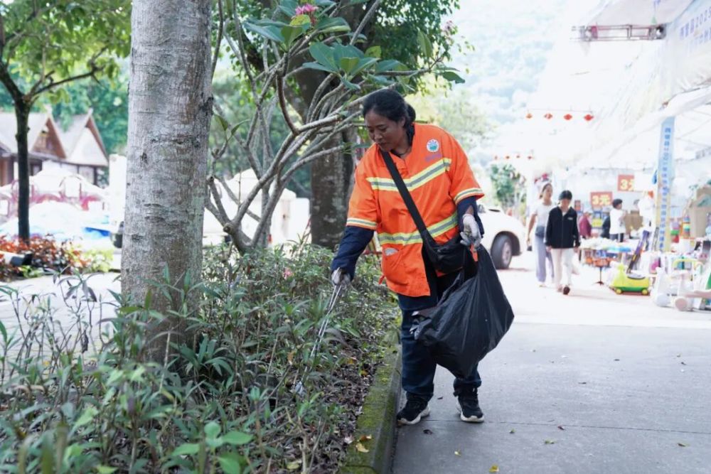 “让游客看到干净的街道,就是最好的节日装饰。”娜弓说话时,身后市民游客正在欢快地游玩,而她的身影始终如一,一寸一寸地守护着每一条街道,将晨光中的橙色身影与石板路的沙沙声交织成节日序曲。