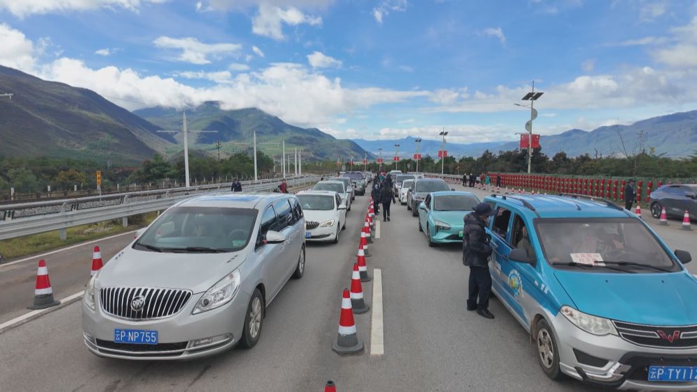 在丽江西收费站,进出城区的车辆有序通行。(丽江融媒记者 戴汝杰 摄)