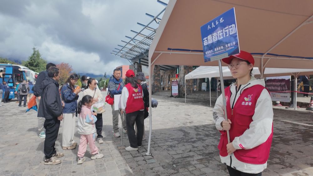 玉龙雪山景区内,志愿者为游客提供各类服务(丽江融媒记者 高浚摄)