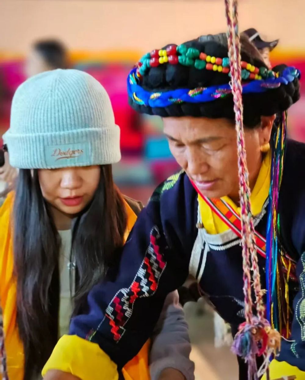 在非遗传承人的指导下,大家可以在这里参与摩梭人传统手工艺制作。从捻线、配色到编织,每一步都蕴含着摩梭人的生活智慧,还可以带一份独特的旅行纪念回家。
