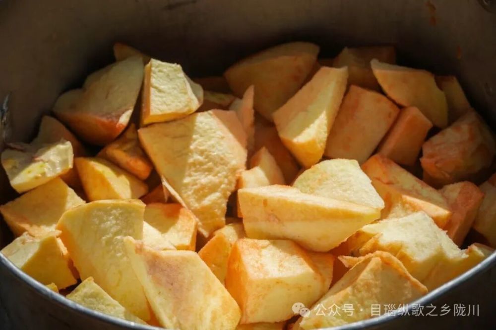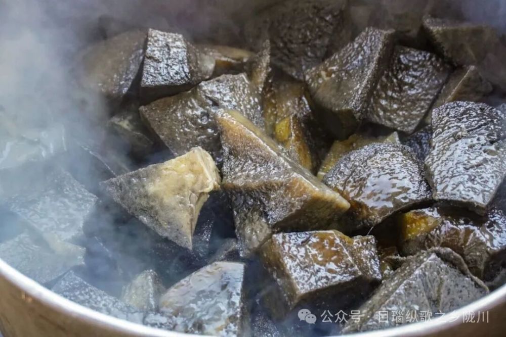 将魔芋切成小块,放置蒸笼,蒸到魔芋变软即可出锅。出锅后再用石碓将魔芋舂碎,舂魔芋一定要趁热,刚出锅的魔芋软糯,舂起来更容易碎。