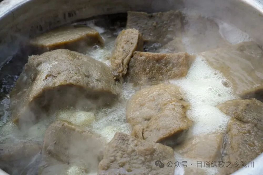 自然冷却定型后,切成大小适中的块状。成型的魔芋块还需要焯一次水,去除涩味,焯水以后就可以进行烹饪了。魔芋的做法多种多样,可以凉拌、炒菜、焖煮、涮火锅等等,也是农村酒席上一道必不可少的“硬菜”。