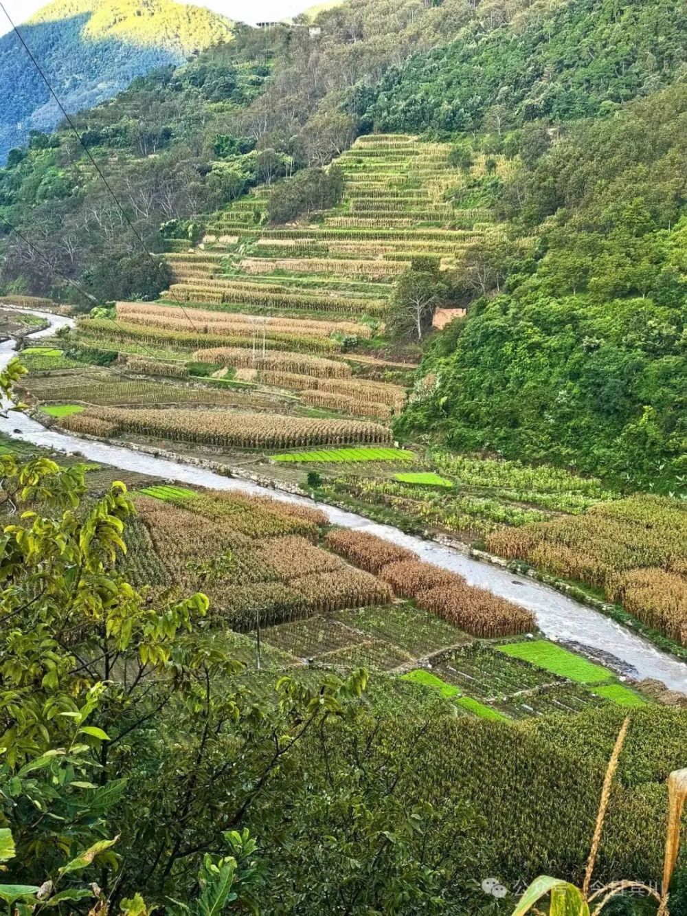往山区彝乡走,秋景又换了一副模样。层层叠叠的梯田嵌在崇山峻岭间,成熟的稻谷泛着深黄,待收的包谷挺着饱满的穗子,偶尔有几畦青绿的贡菜苗点缀其间,色彩错落有致。