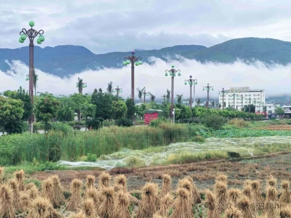 县城边的稻田已完成了使命,收割后的稻草被扎成捆,整齐地立在田间,像一个个守护家园的卫士,在秋风中静静伫立。雨后的玉带云更显清新,道路旁的灯杆倒映在湿漉漉的地面,与远处的稻田残影交织,偶尔有行人撑着伞走过,脚步声与风声、虫鸣声混在一起,是县城秋日里温柔的日常。