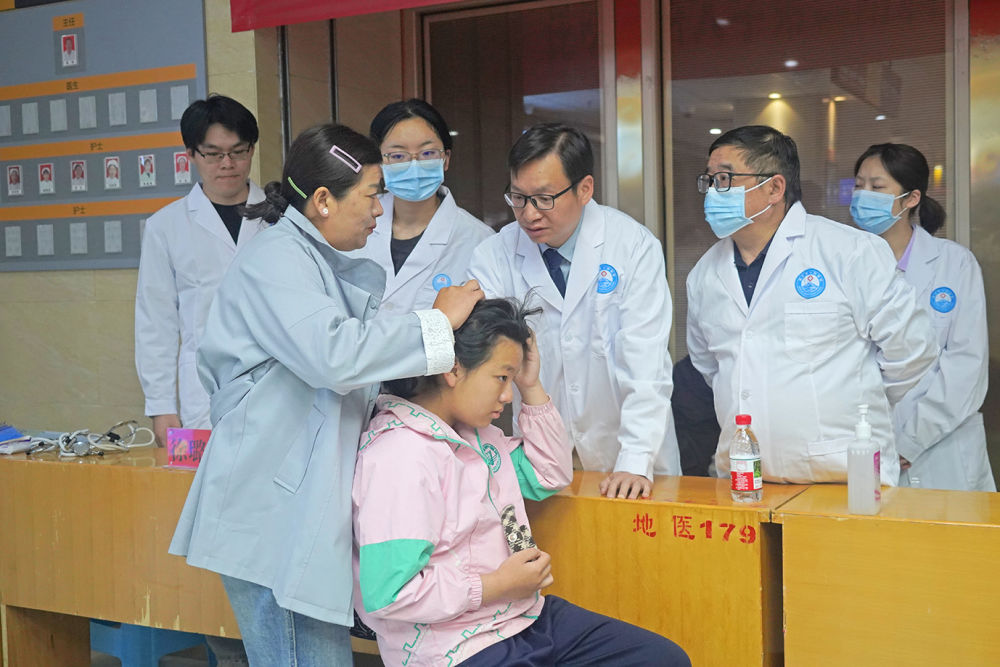 10月11日,何永静教授专家团队在给前来咨询的市民检查。(丽江融媒记者 吴星 摄)