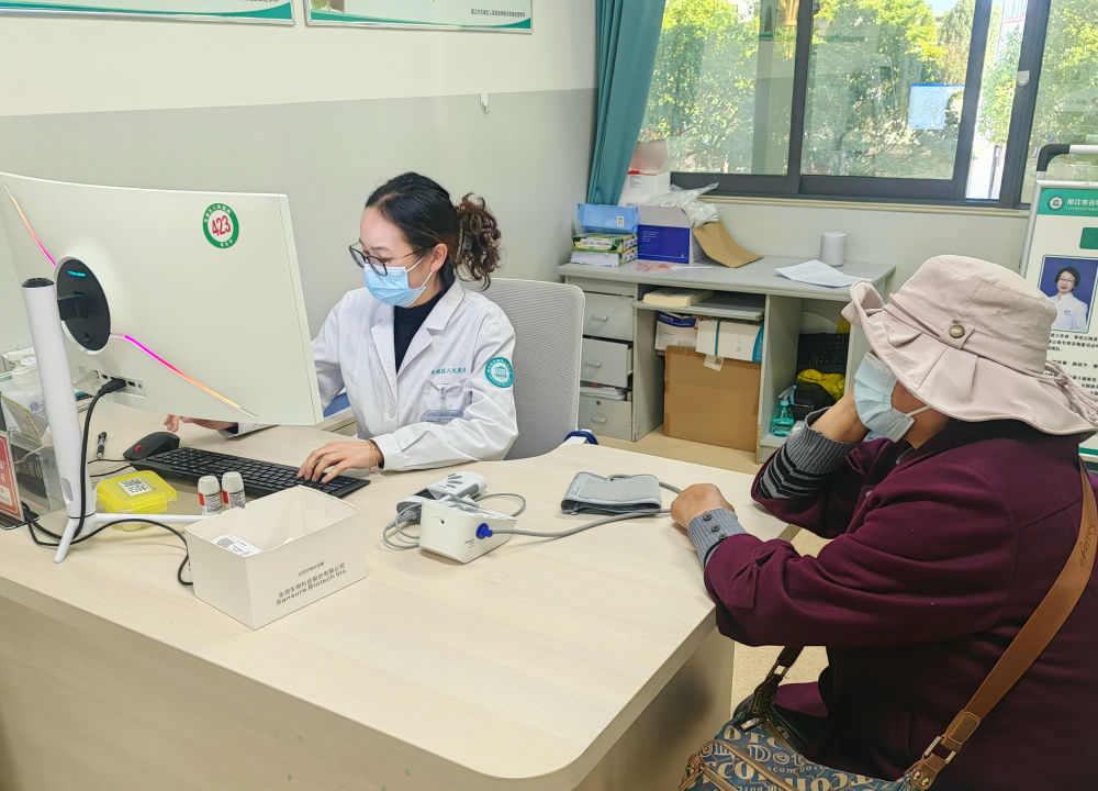 石宝秀医生与患者沟通中。(供图)