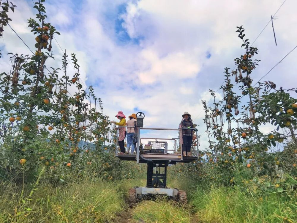 忙碌而有序地采摘着苹果
