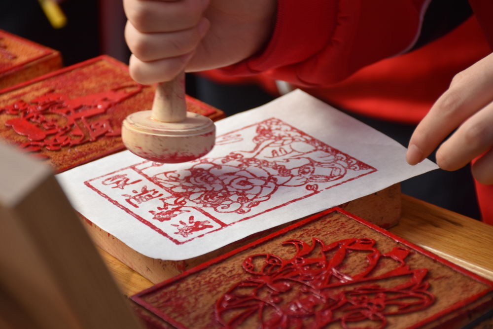 体验非遗甲马拓印。(丽江融媒记者 杨四娟 摄)