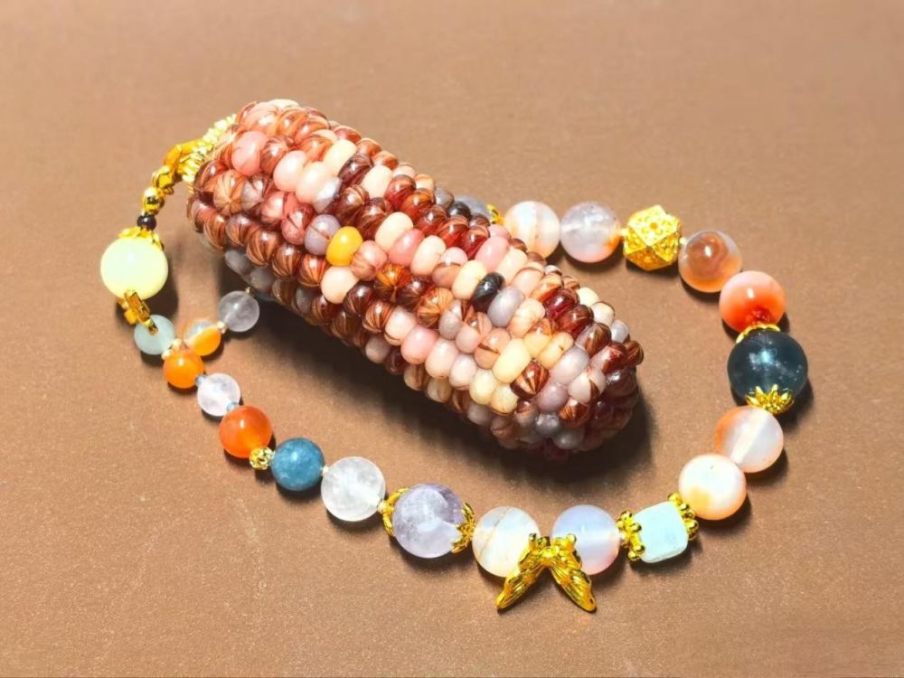 经自然晾晒、人工精选、手工创意后,高颜值的玉米迎来了“七十二变”:配上木质底座成为文玩摆件,单粒打孔辅以云南银饰变成手链、钥匙扣,挂饰、装饰画等。
