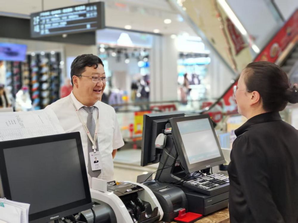 丽江国际购物广场营业部经理肖加洪检查活动开展情况。(丽江融媒记者 和琼 摄)