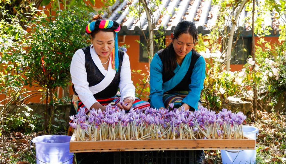 近日,循着花香来到云南省迪庆藏族自治州维西傈僳族自治县塔城镇其宗村,一朵朵红蓝相间的藏红花盛开在农户的花房里,这些小小花朵每年带动塔城镇400多户农户增收,年增收超千万元。
