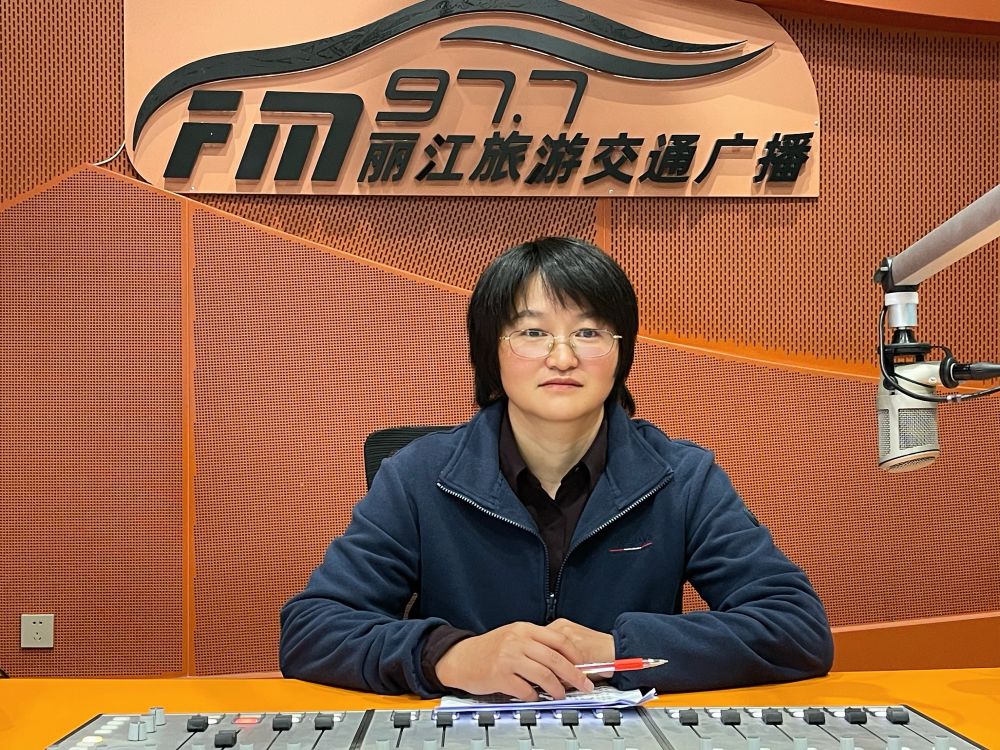 10月27日,丽江市医疗保障局规划财务和政策法规科科长 龚春芬 走进FM97.7丽江旅游交通广播直播间。(丽江融媒记者 徐蕾 摄)