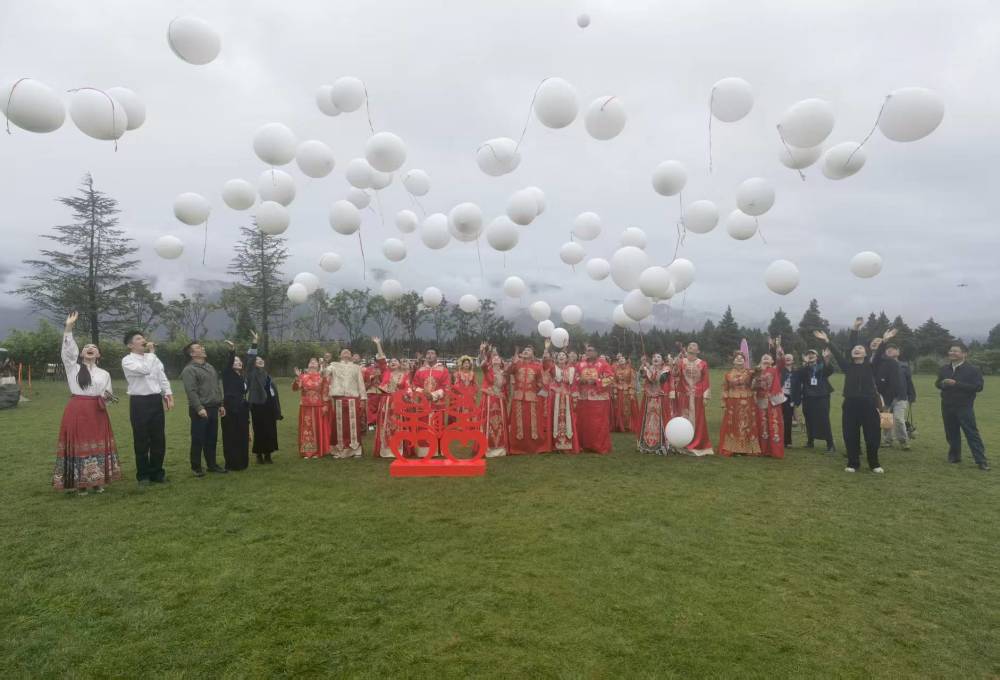 新人们共同放飞气球祝福,让满载祝福的气球飞向天空。(丽江融媒记者 吕坤钊 摄)