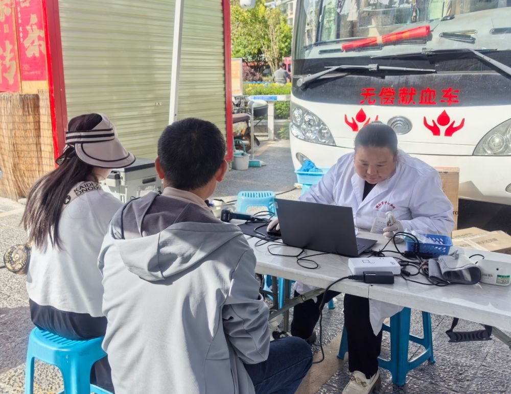 丽江市中心血站工作人员为无偿献血热心市民登记信息。(丽江融媒记者 侯玮 摄)