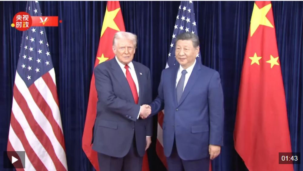 当地时间10月30日上午,国家主席习近平在釜山同美国总统特朗普举行会晤。