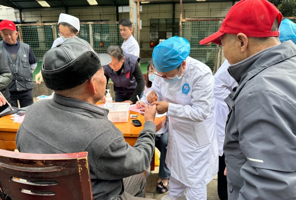 医护人员为老人测血糖。(丽江融媒记者 吕坤钊 摄)