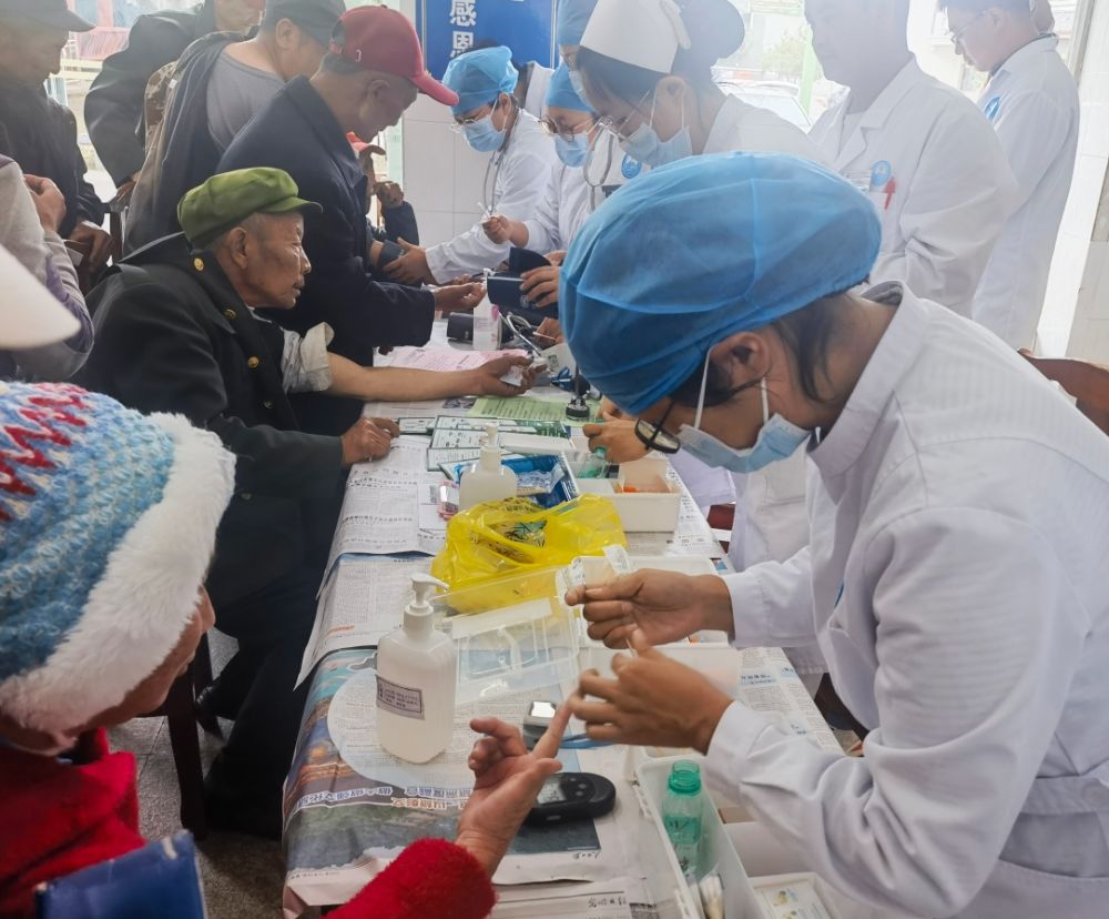 医护人员为老人量血压、测血糖。(丽江融媒记者 吕坤钊 摄)