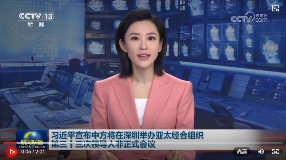 当地时间11月1日上午,国家主席习近平出席亚太经合组织第三十二次领导人非正式会议东道主交接环节,宣布中方将于明年11月在广东省深圳市举办亚太经合组织第三十三次领导人非正式会议。