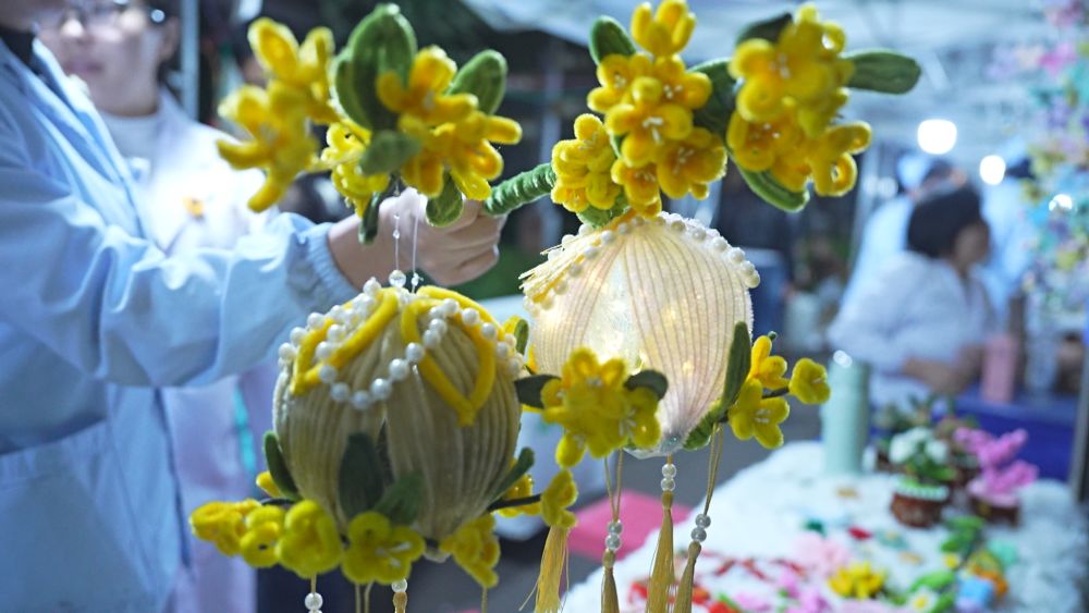 市民在夜市挑选精美香囊。丽江融媒记者 张丽瑶 摄