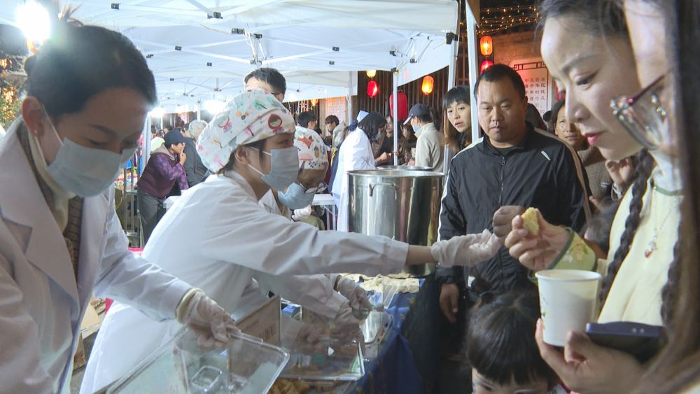 市民正品尝清热祛湿饼干等养生膳食。丽江融媒记者 张丽瑶 摄