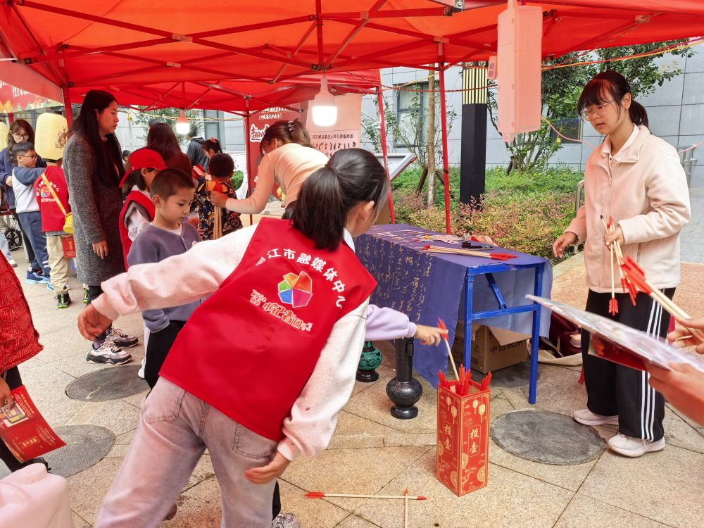 小记者们参加投壶、制作灯笼等游戏。(丽江融媒记者 木雯娇 摄)