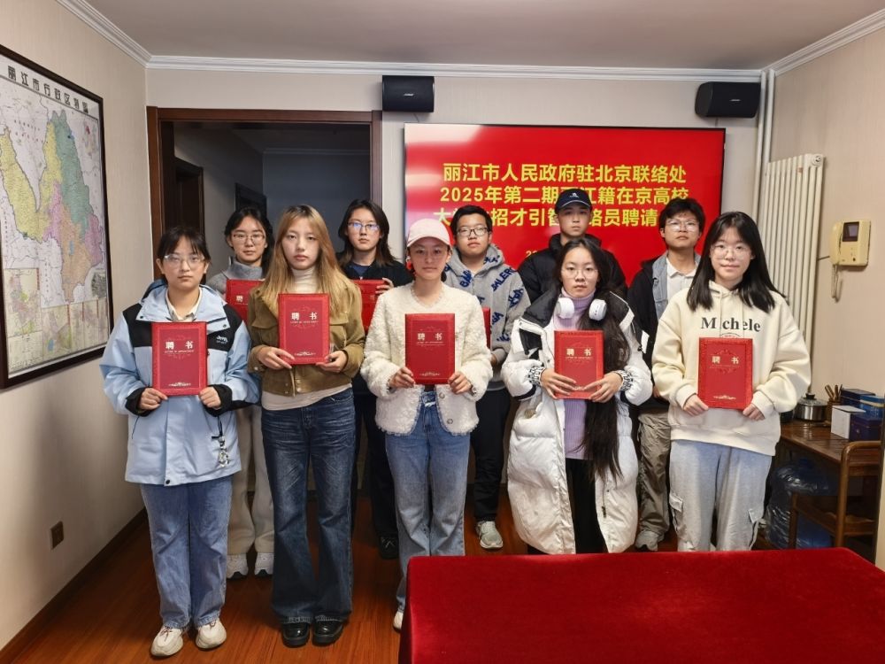 为落实丽江市2025年人才工作部署,深化与丽江籍在京高校学子的联系纽带,推动“人才回乡、智力回流”,近日,丽江市人民政府驻北京联络处(以下简称市驻京联络处)分两期召开聘请会议。聘请21名来自北京大学、中国人民大学等21所高校的丽江籍学生代表为“丽江籍高校大学生招才引智联络员”。