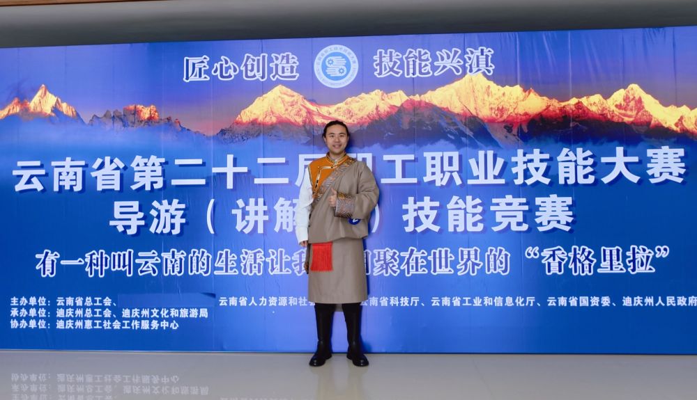 本届竞赛以“匠心创造 技能兴滇”为主题,设置理论考试、讲解展示、应急处置等全方位考核环节,汇聚全省各州(市)文旅行业精英同台竞技。竞赛中,周志衡以“雪山下的文化密码”为主线,深度融合丽江古城街巷肌理、玉龙雪山人文传说与纳西族东巴文化,凭借精准生动的表达、富有感染力的情感传递,赢得评委团好评。
