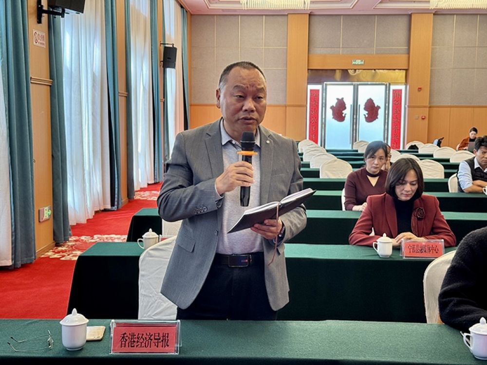 11月4日,香港经济导报驻丽江联络处记者姚成做客FM97.7丽江旅游交通广播直播间。(丽江融媒记者 和琼 摄)