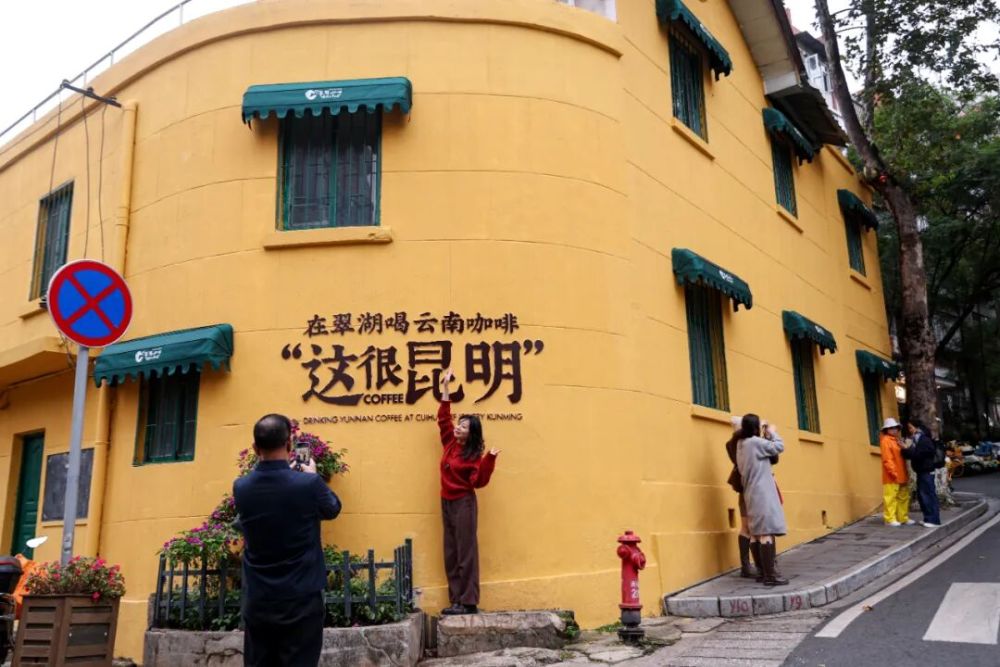 市民游客在黄公东街市政公园地标处拍照。胡妤雅 摄