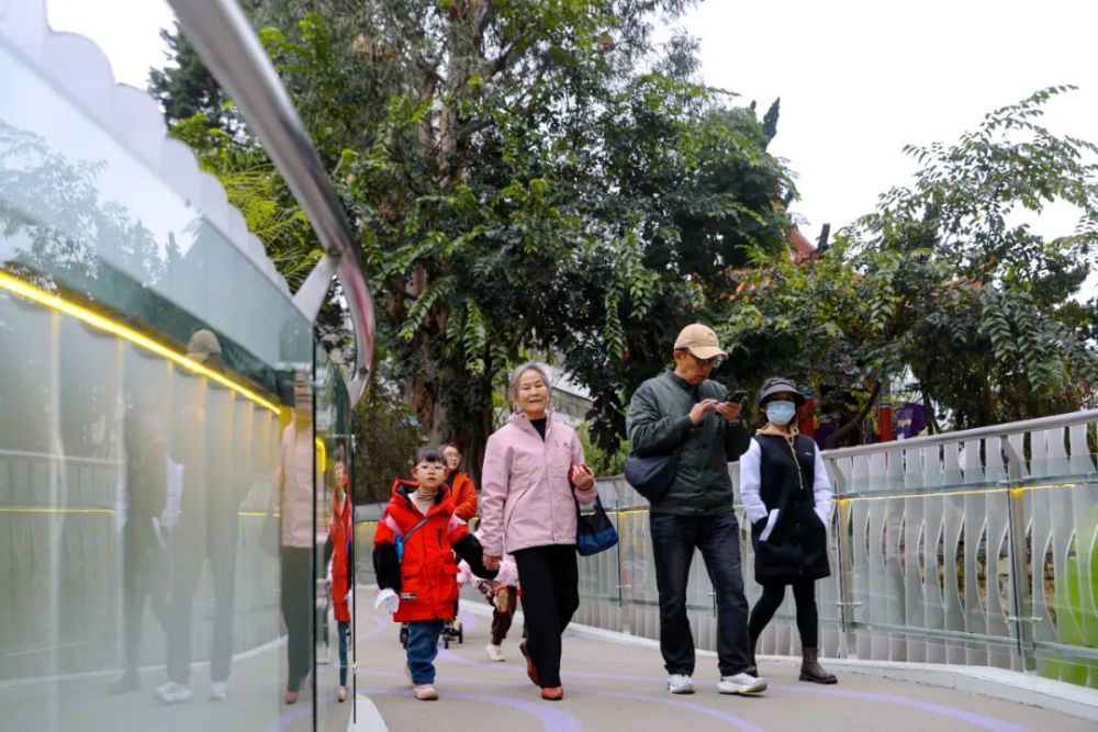 市民游客在翠湖城市绿道架空栈道上漫步游览。胡妤雅 摄