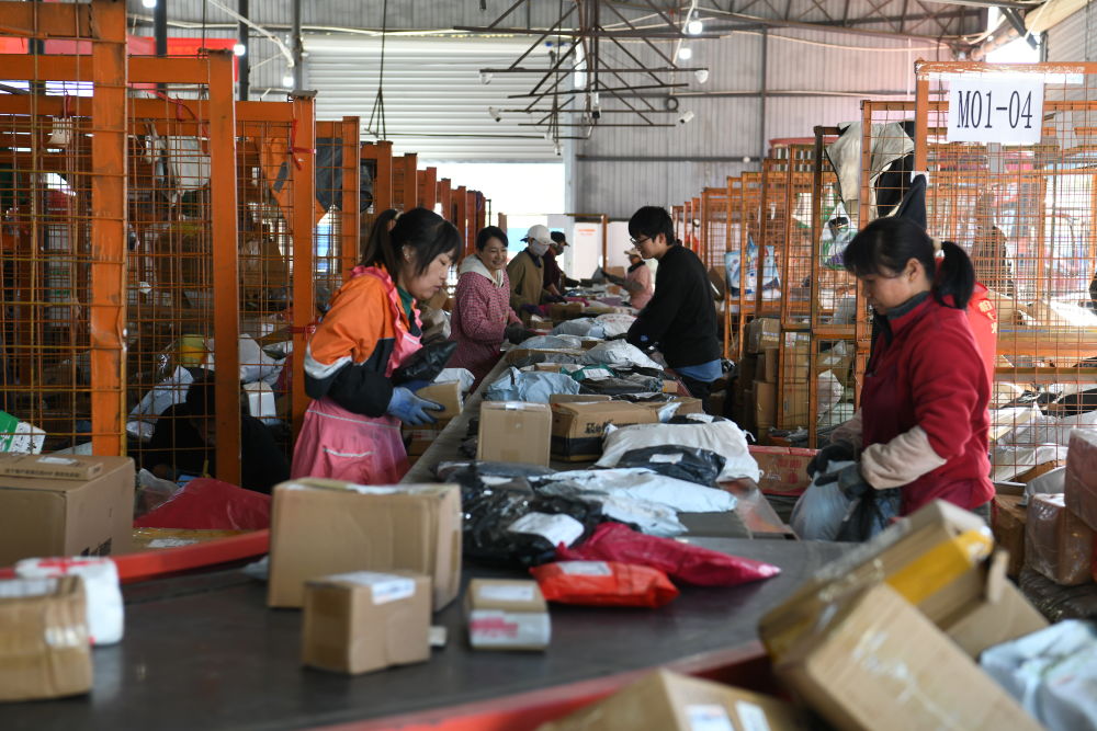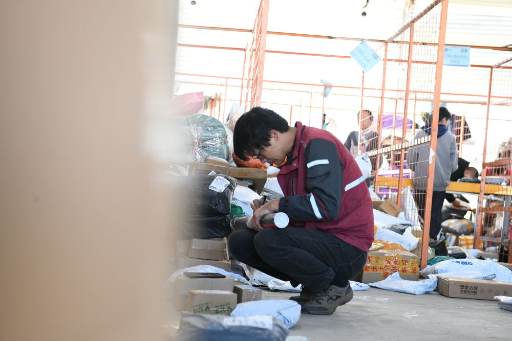 分拣员在丽江快递物流园区分拣包裹。(丽江融媒记者 赵庆祖 摄)