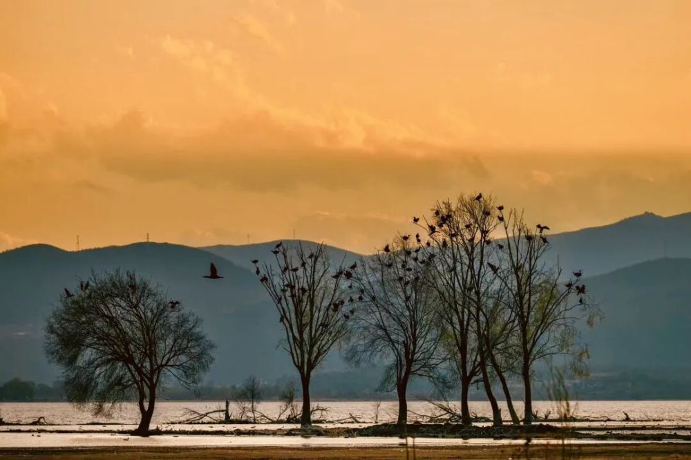 清晨第一缕阳光穿透云层,洒向这片高原湿地,薄霜悄然化作氤氲水汽。湖面如镜,倒映着天光云影,而真正的盛宴在空中——成千上万的候鸟从遥远北方如约而至,翩跹起舞,赴这场冬日之约。