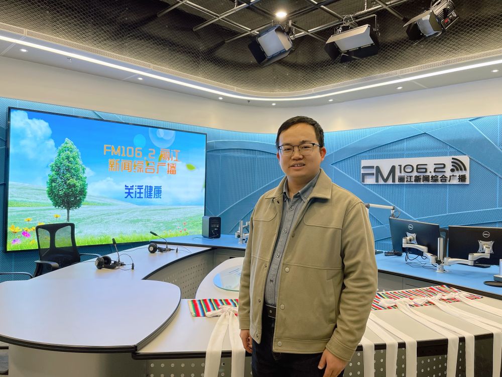 11月12日,古城区人民医院心血管内科主治医师 汤道文 走进FM106.2丽江新闻综合广播直播间。(丽江融媒记者 徐蕾 摄)
