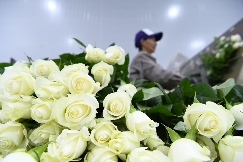 工人在整理鲜花。(丽江融媒记者 赵庆祖 摄)